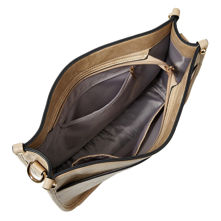 013 Leopard Strap PU Leather Single-shoulder Waterproof Crossbody Tote Bag(Khaki)