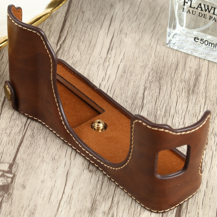 1/4 inch Thread PU Leather Camera Half Case Base for FUJIFILM X100V (Coffee)