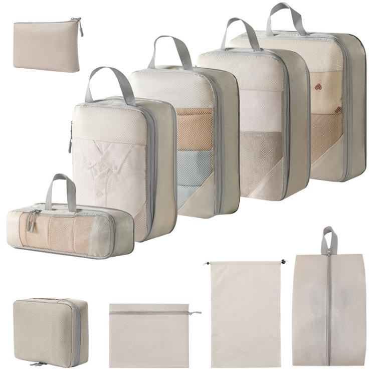 10 In 1 Mesh Compressed Travel Organizer Bag Luggage Clothes Shoes Toiletries Storage Bag(Gray)