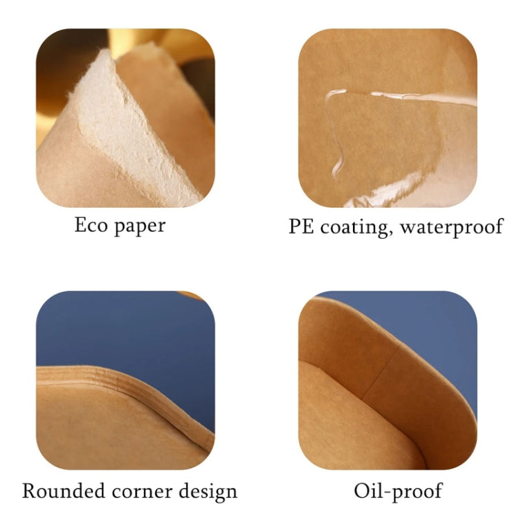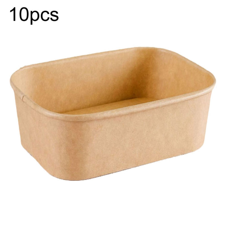 10pcs 850ml Disposable Kraft Paper Lunch Box Rectangular Round Corner Takeaway Packaging Boxes(K28 Vellum Bowl)