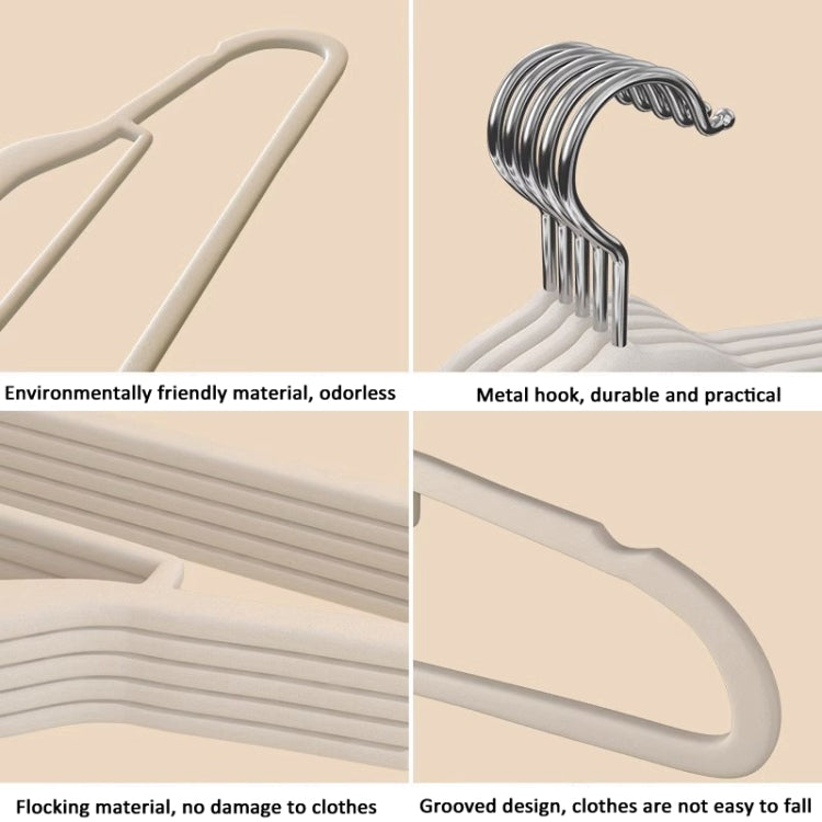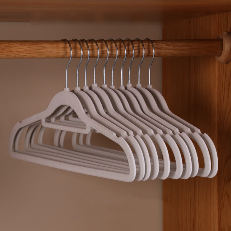 10pcs /Pack 41cm Flocking Clothes Hanger Non-Slip Traceless Clothing Rack Hook(Light Gray)