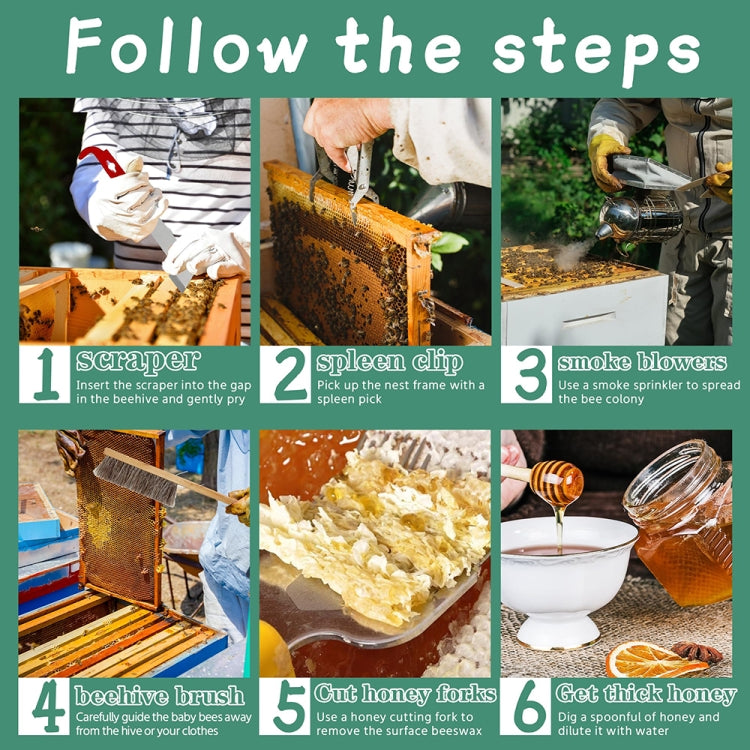 1. The tool kit includes a series of practical tools such as bee brushes, frame clamps and J-hook beehive tools to help you easily operate the beehive and manage the lives of the bees, making the beekeeping process smoother.