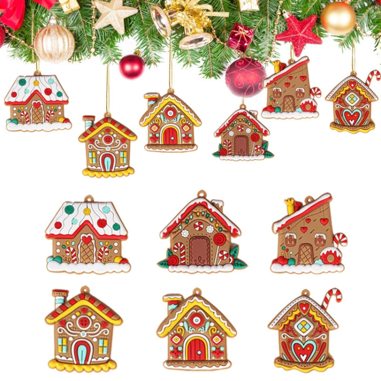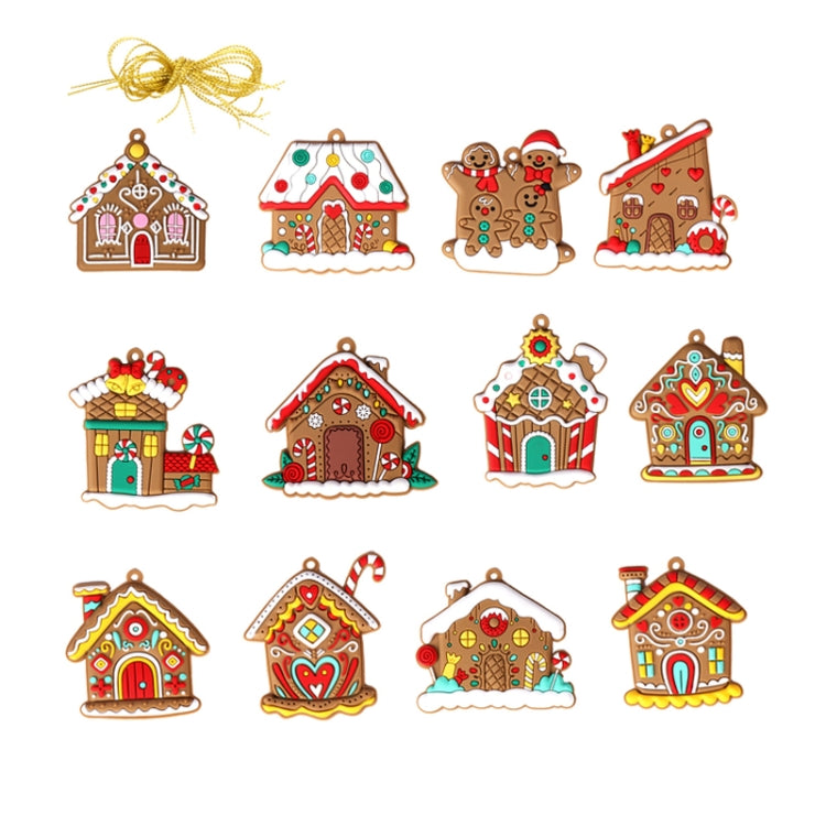 12pcs /Set House Christmas Decorations Pendants PVC Hanging Christmas Tree Ornaments Scene Arrangement Props