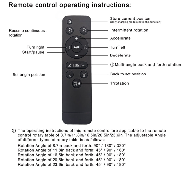 1. Remote control speed: The speed range is 8/15/30 sec/rev.