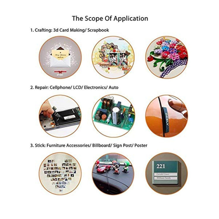 4. Strong Viscosity: No odour and environmental protection, acrylic clear heavy duty double sided tape,long lasting coated with permanent adhesive.