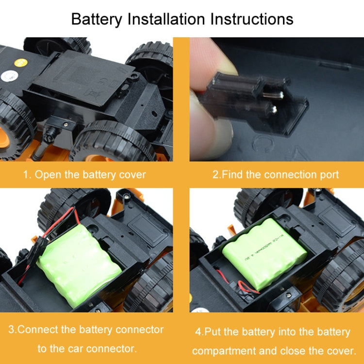 7. Functions: forward/backward, left/right turn, rear bucket remote control lift, music/sound effects, horn, mute, automatic demonstration