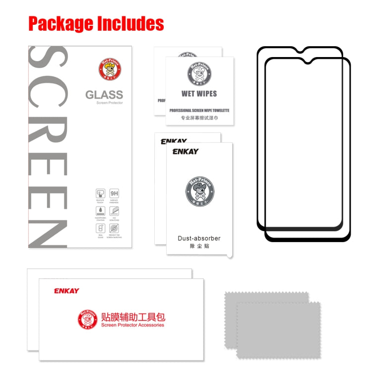 2 PCS ENKAY Hat-prince Full Glue 0.26mm 9H 2.5D Tempered Glass Film for OnePlus 6T & 7