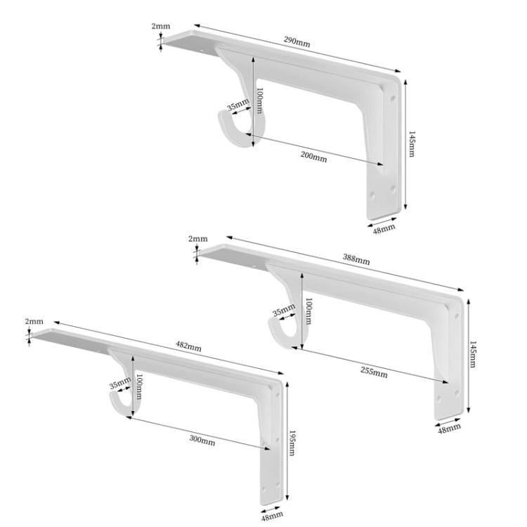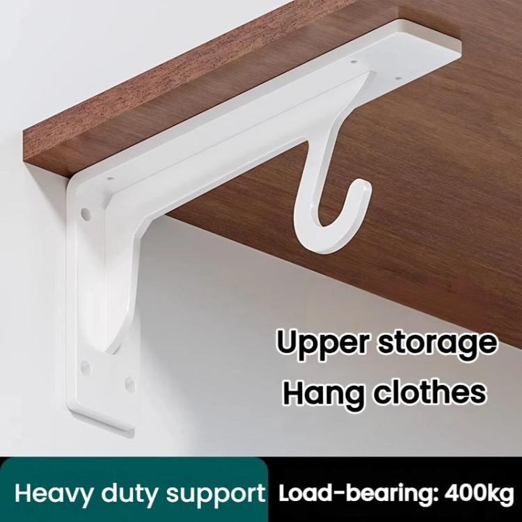 1. Heavy-duty hook bracket designed for open wardrobes, closets, and commercial clothing displays. Combines a sturdy shelf panel and hooks for hanging rods to maximize space efficiency and organize your storage area neatly.