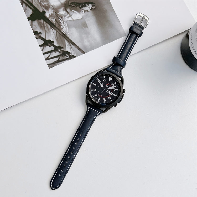 20mm Sewing Plain Weave Small Waist Leather Watch Band(Blue)