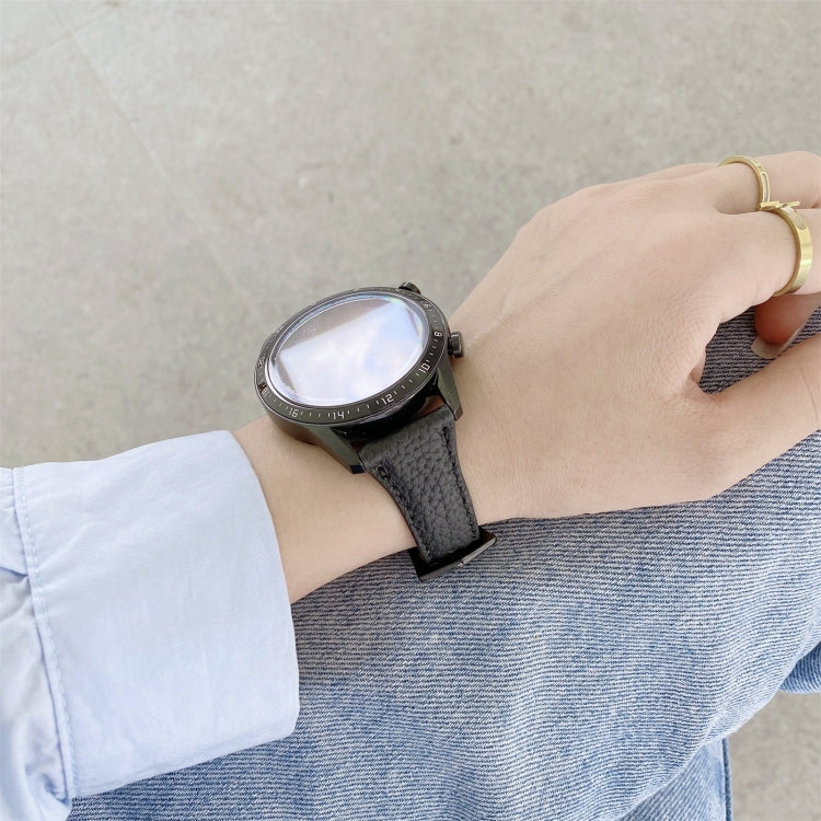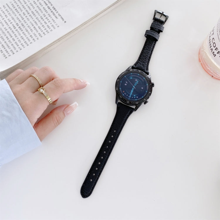 20mm Small Waist Lychee Texture Leather Watch Band(Black)