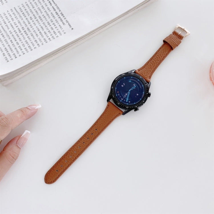 20mm Small Waist Lychee Texture Leather Watch Band(Brown)