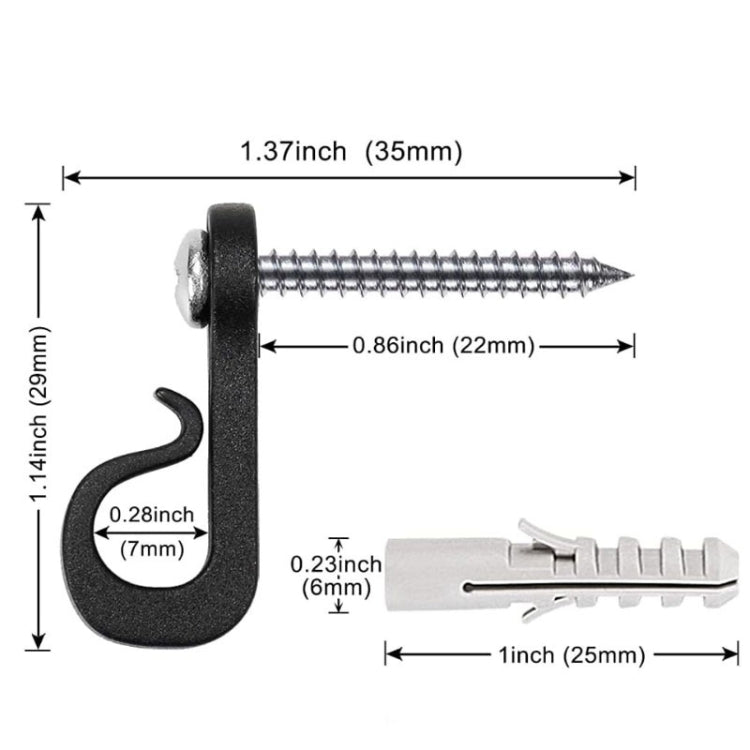 20pcs /Box Holiday Lights Hanger Hooks With Phillips Screw For Wire And Led Light(Black)