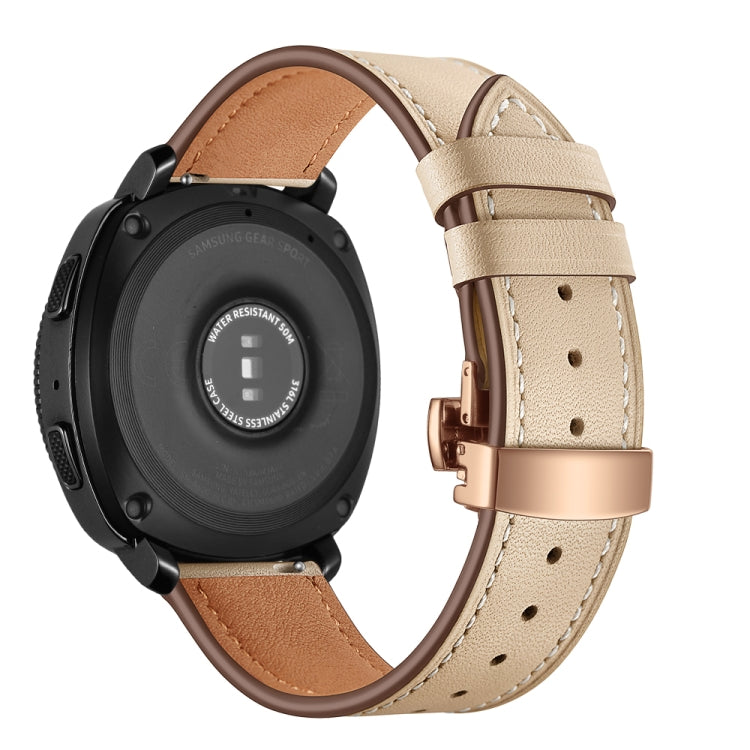 22mm For Huawei Watch GT2e / GT2 46mm Leather Butterfly Buckle Strap Rose Gold Buckle(Apricot)