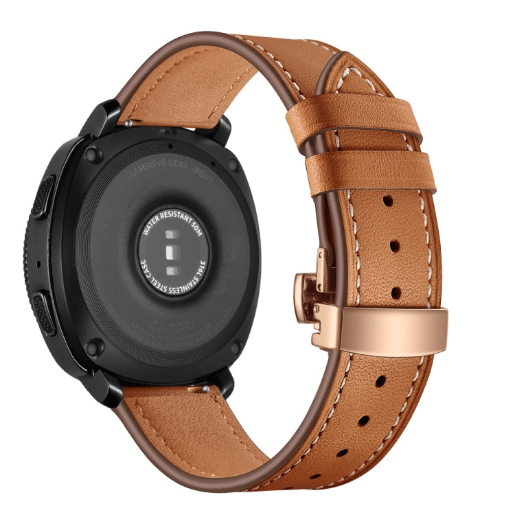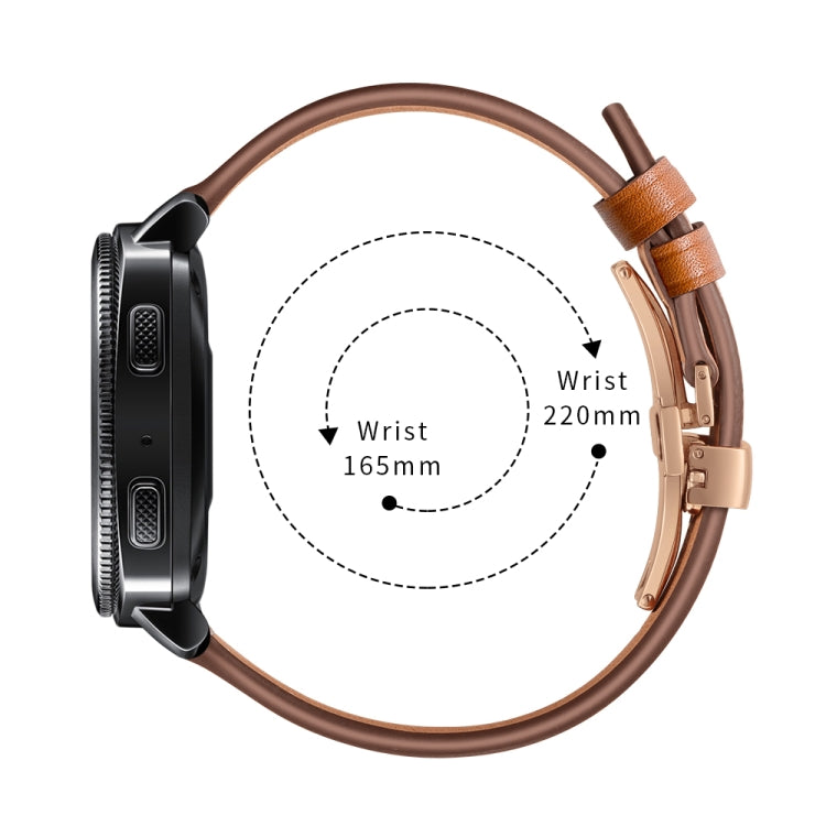 22mm For Huawei Watch GT2e / GT2 46mm Leather Butterfly Buckle Strap Rose Gold Buckle(Brown)
