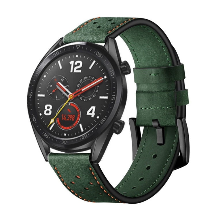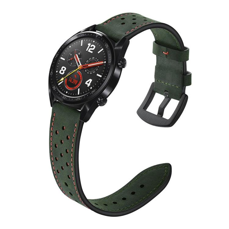 22mm For Huawei Watch GT2e / GT2 46mm Plum Blossom Hole Leather Watch Band(Green)