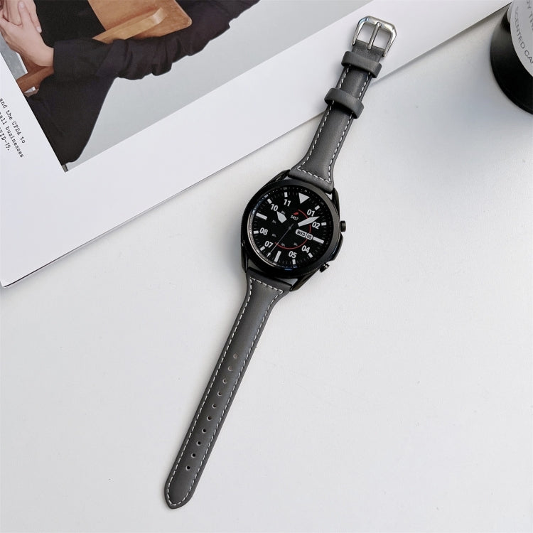 22mm Sewing Plain Weave Small Waist Leather Watch Band(Grey)