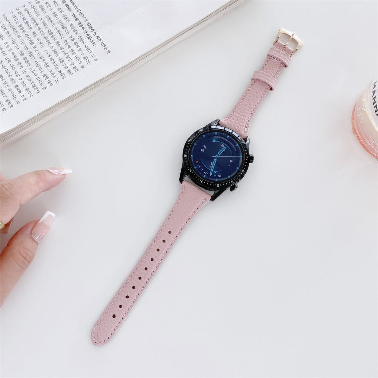 22mm Small Waist Lychee Texture Leather Watch Band(Pink)