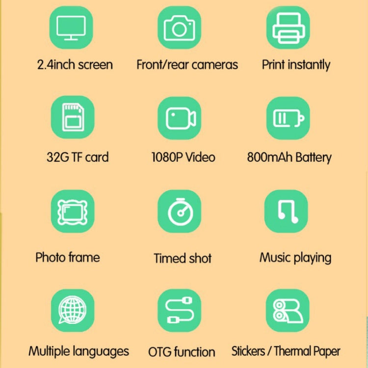 2.4 Inch 1080P HD Instant Printing Camera Children Thermal Printer With 32G TF Card(Green)