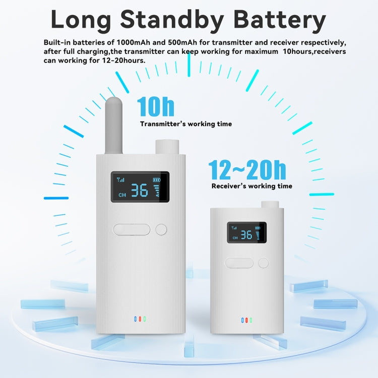 1. Wireless explainer/receiver mainly transmits the voice content through the device, and the receiver can realise one person to explain and many people to listen under the same channel