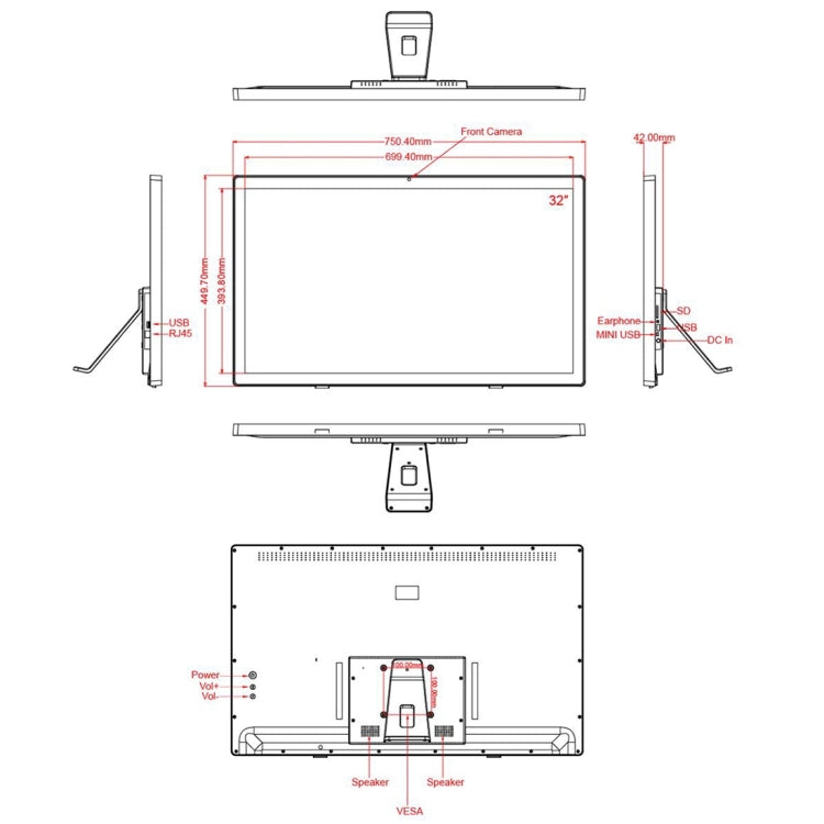 32 inch LCD Display Digital Photo Frame, RK3399 Dual-core A72 + Quad-core A53 up to 2.0GHz, Android 7.1, 2GB+16GB, Support WiFi & Ethernet & Bluetooth & SD Card & 3.5mm Jack