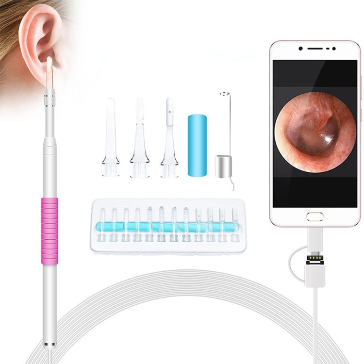 i95 3 in 1 USB Ear Scope Inspection HD 0.3MP Camera Visual Ear Spoon for OTG Android Phones & PC & MacBook, 1.75m Length Cable (Pink + White)