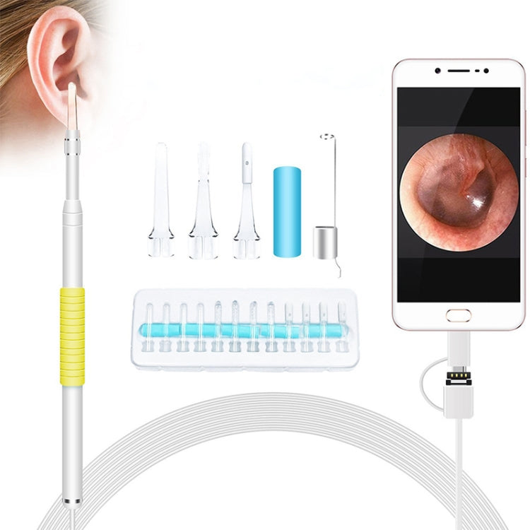 i95 3 in 1 USB Ear Scope Inspection HD 0.3MP Camera Visual Ear Spoon for OTG Android Phones & PC & MacBook, 1.75m Length Cable (Yellow + White)