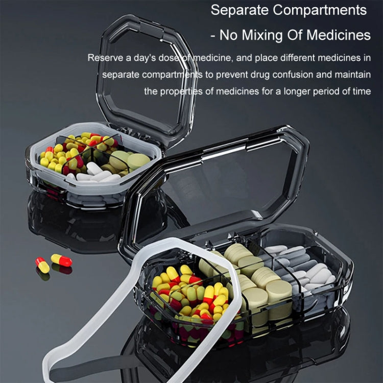 Portable Mini Compartmentalized Sealed Pill Box Weekly Morning And Evening Pill Capsule Dispensing Box, Style: 4 Grids Gray