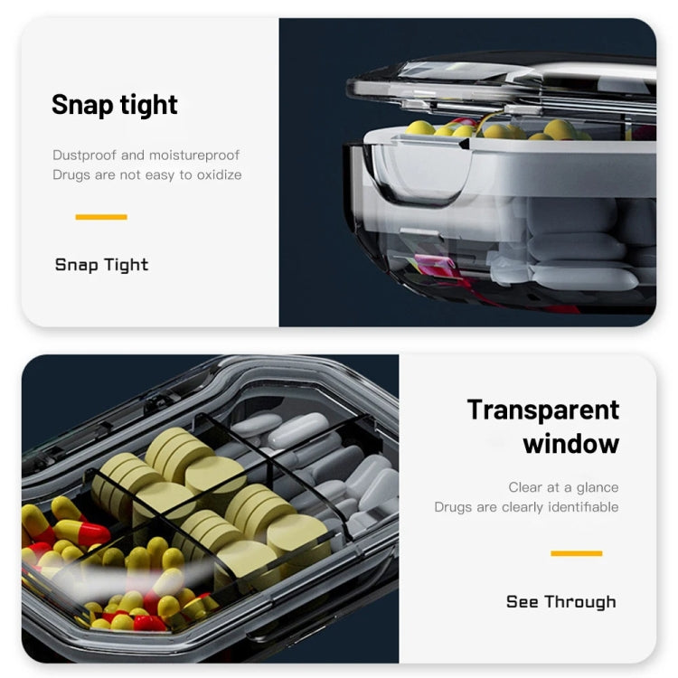 Portable Mini Compartmentalized Sealed Pill Box Weekly Morning And Evening Pill Capsule Dispensing Box, Style: 6 Grids Gray