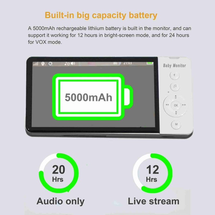 ABM700 5 inch Wireless Video Night Vision Baby Monitor Security Camera(US Plug)