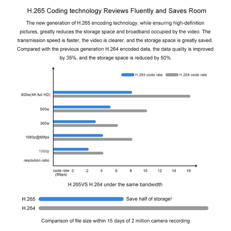 3. H.265 encoding technology, smooth viewing and space saving: H.265 video encoding technology, while ensuring high-definition images, greatly reduces the storage space and bandwidth occupied by the video.