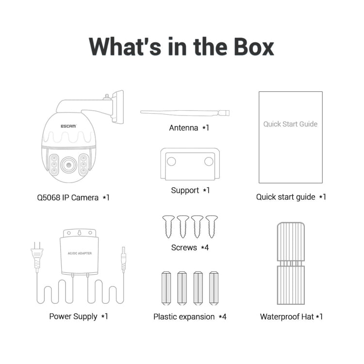ESCAM Q5068 H.265 5MP Pan / Tilt / 4X Zoom WiFi Waterproof IP Camera, Support ONVIF Two Way Talk & Night Vision, US Plug