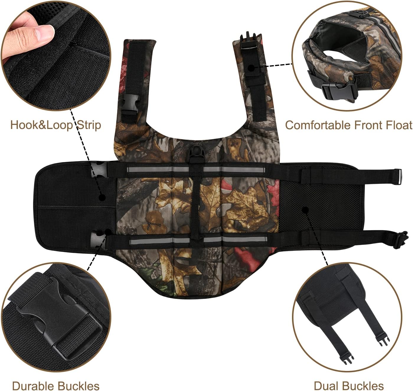 HAOCOO Dog Life Jacket Vest Saver Safety Swimsuit Preserver with Reflective Stripes (Camouflage - Size Large)