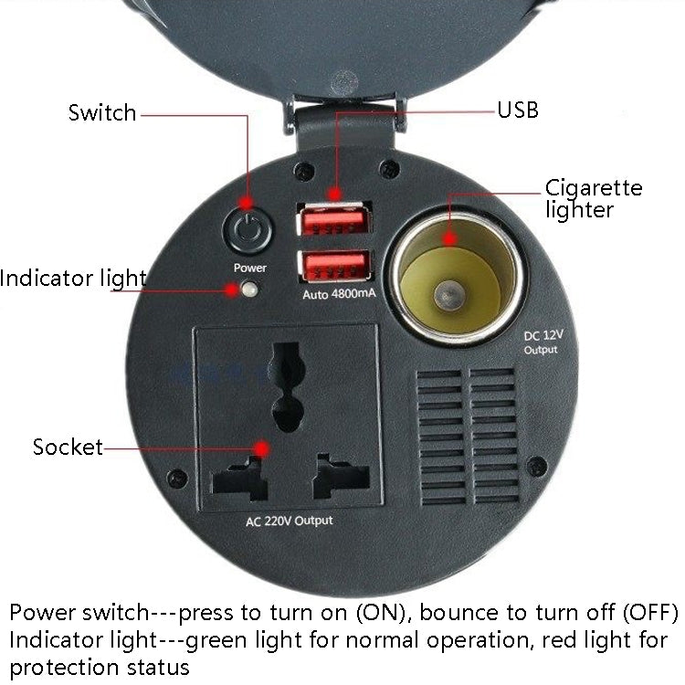 150W 12V To 220V Car Inverter Dual USB 2.1A Power Converter Booster