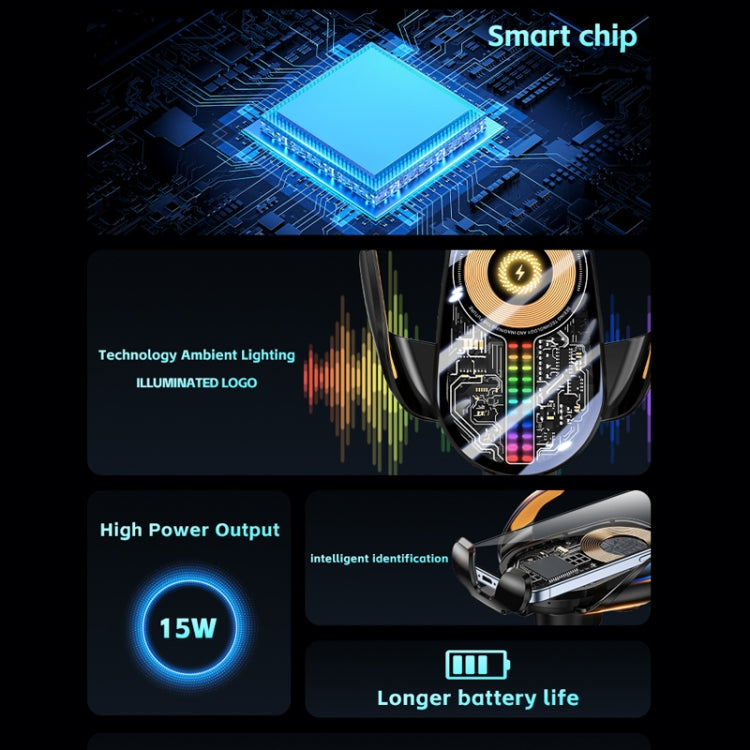 15W Car Sound Pickup Atmosphere Light Wireless Mobile Phone Charging Stand(Black)