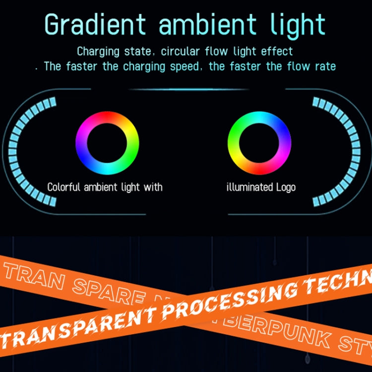 19. RGB colorful lights, gradient atmosphere lights, charging status, circular flowing water light effect, the faster the charging speed, the faster the flow rate will be.