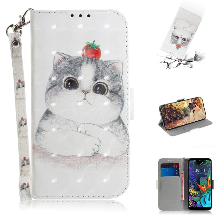 3D Painting Cute Cat Pattern Coloured Drawing Horizontal Flip Leather Case for LG K50, with Holder & Card Slots & Wallet