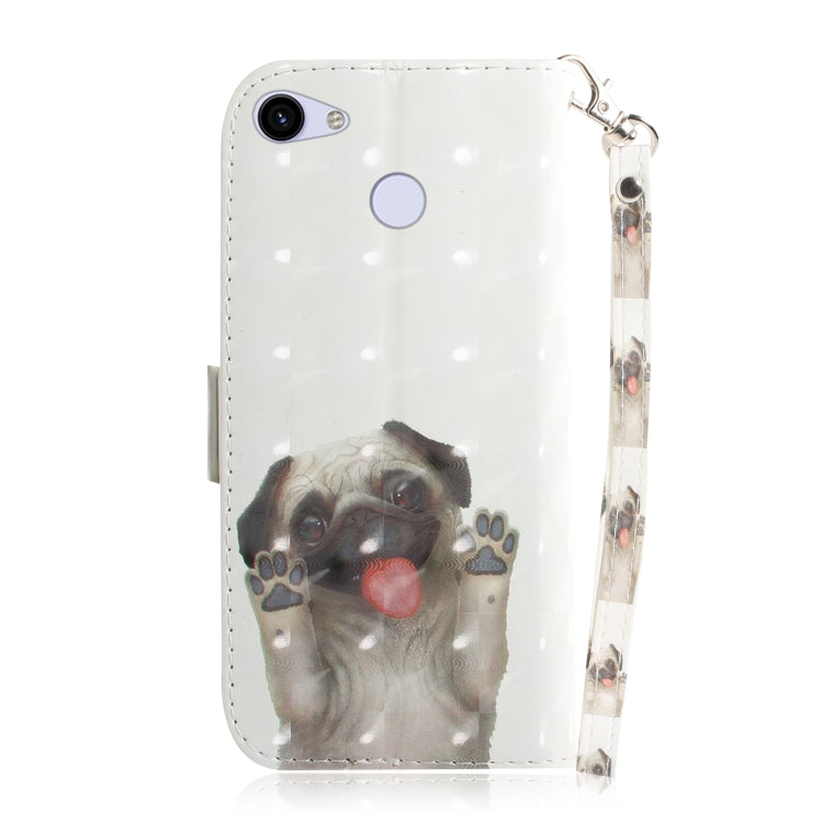 3D Painting Pug Pattern Coloured Drawing Horizontal Flip Leather Case for Google Pixel 3a, with Holder & Card Slots & Wallet