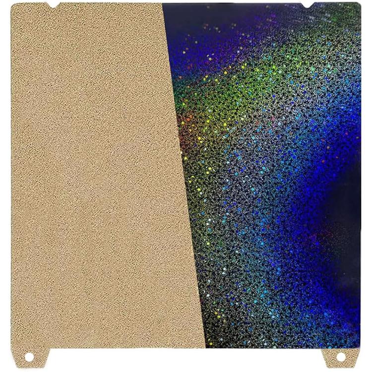 1. Double Sided Printing:The textured PEI surface presents a distinctive frosted touch, and provides greater adherence to the model and prints without warping. The smooth film surface has patterns such as carbon fiber, diamond, and starry sky, which will leave corresponding patterns on the printed model.