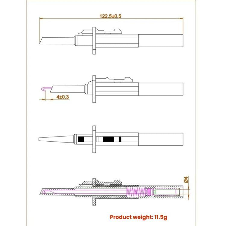 3. Widely used in cable repair, power detection, industrial field detection and other cable non-destructive detection, safe and fast, after the test is completed, release the button to remove the wire, the cable sheath is not scratched