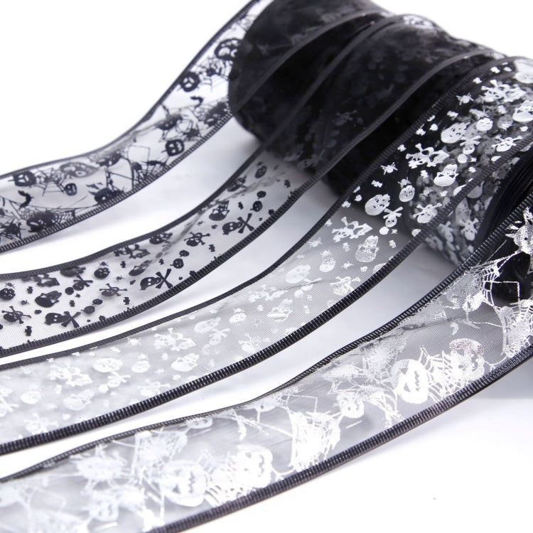 5m Halloween Decoration Gold-stamped Cartoon DIY Bow Ribbon(Silver Pumpkin Spider Web)