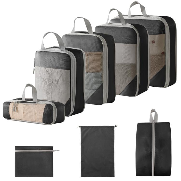 8 In 1 Mesh Compressed Travel Organizer Bag Luggage Clothes Shoes Toiletries Storage Bag(Black)