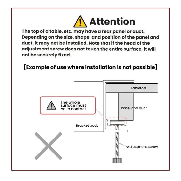 -- Ensure adjustment screws fully contact the surface for stability.