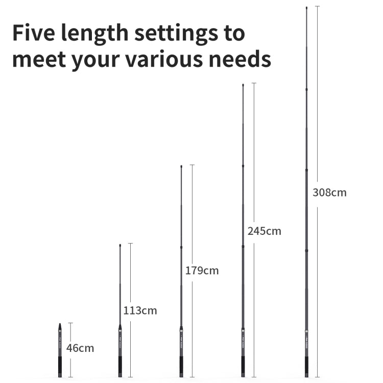 3. It can be fixed in a variety of lengths, such as 46cm/113cm/179cm/245cm/308cm, allowing you to shoot more creative works