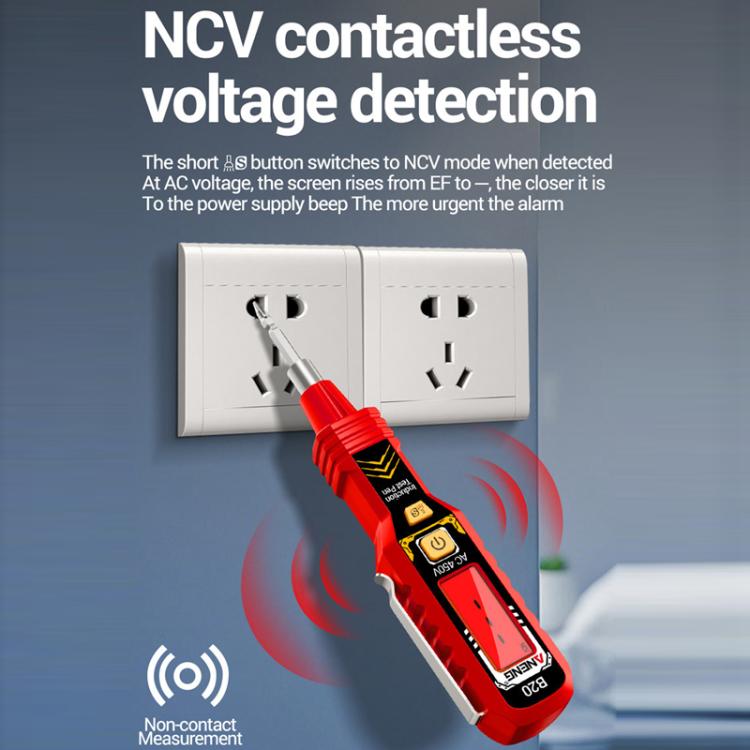 15. NCV non-contact voltage detection, after switching to this mode, the screen displays EF. When the nearby AC voltage is detected, the screen rises from EF to ---. The closer to the power source, the more urgent the buzzer alarm