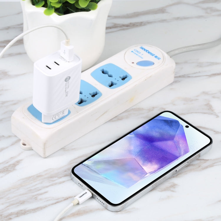 AR-892 3 in 1 QC3.0 PD20W USB + USB-C / Type-C Wall Travel Charger, Plug Type:EU Plug(White)