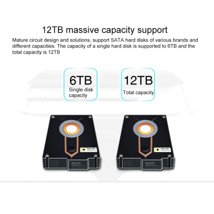 5. The capacity of a single hard disk is up to 6TB, and the total capacity is up to 12TB