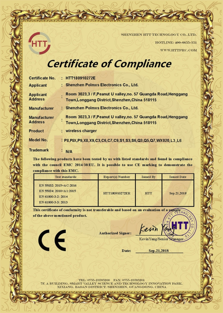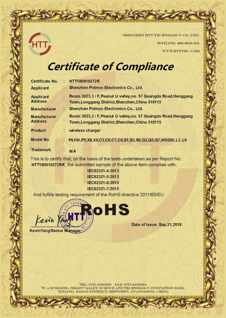 Product certification: CE FCC Rohs