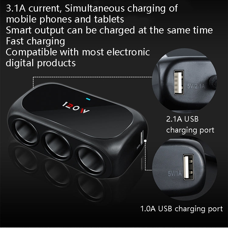 1. Dual USB charging ports + 3 cigarette lighter ports, smart, safe and convenient, which can be used to charge multiple devices at the same time