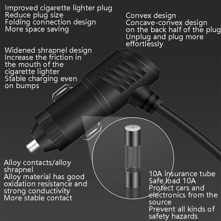 10. Improved cigarette lighter plug, shortened plug size, foldable connection design, more space-saving