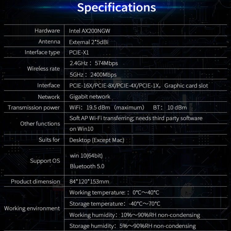 7. Wireless rate: 2.4GHz: 574Mpbs, 5GHz: 2400Mpbs